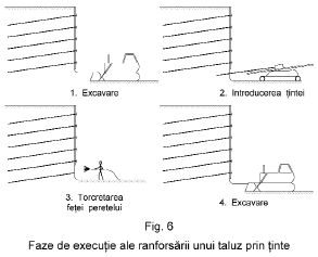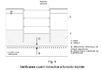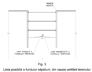 - atingerea nivelelor de excavare la intervale de cca. 6,0 m, inclusiv ultimul nivel, daca proiectantul nu indica intervale mai mici in functie de metoda de executie aplicata, verificand: