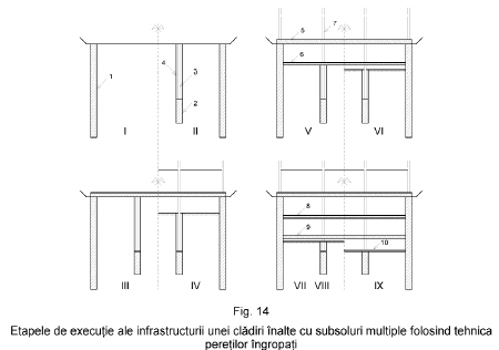 Principalele etape ale realizarii excavatiei adanci in zone urbane sunt: