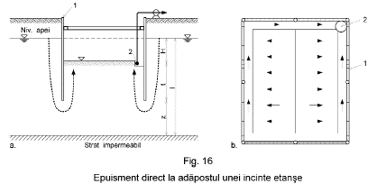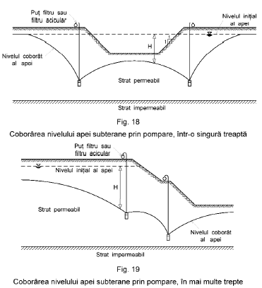 - sistemul ele epuizmente, cand s-a prevazut coborarea nivelului apei subterane;