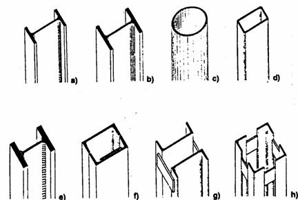 profile laminate I (a) sau H (b), eventual ranforsate cu platbande sudate (c)