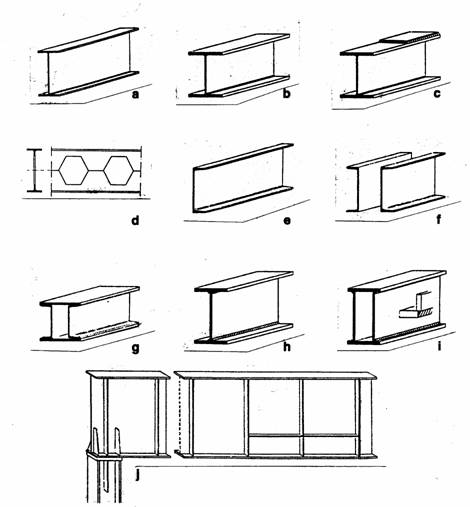 sectiuni compuse din laminate sudate (h, i, j) cu inima rigidizata cu nervuri (k)