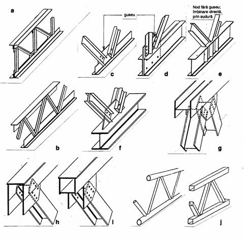 nodurile - realizate cu ajutorul unor "gusee" (c - i)
