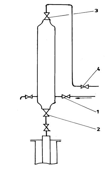 - Se pompeaza apa sarata in lubricator prin ventilul 1, pana cand acesta se umple. Ventilul 2 este inchis in acest timp, iar ventilele 3 si 4 sunt deschise, prin ele trecand apa sarata.
