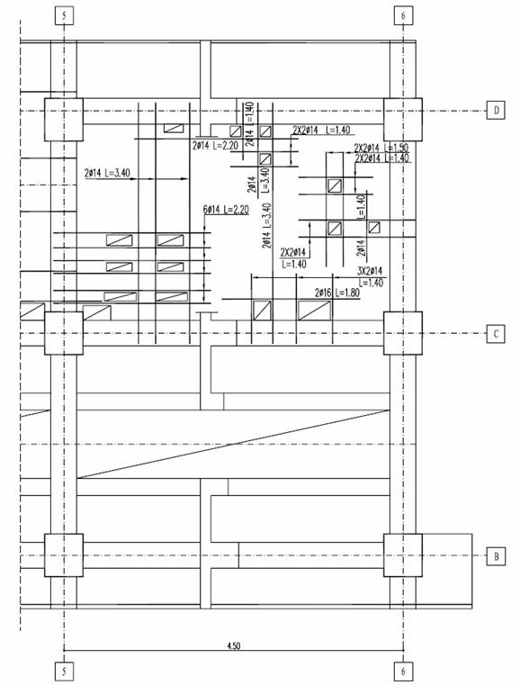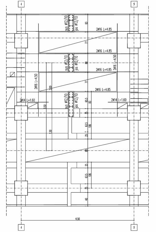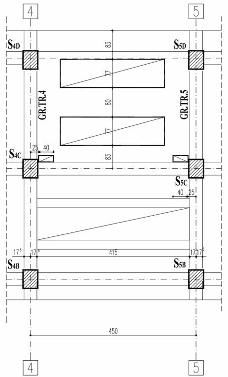 O situatie similara se afla in deschiderea C-D, traveea 4-5. Aici sunt dispuse sitele mecanice. Golurile tehnologice de dimensiuni mari si echipamentele aflate la intradosul platformei au condus la solutia ingrosarii placii.