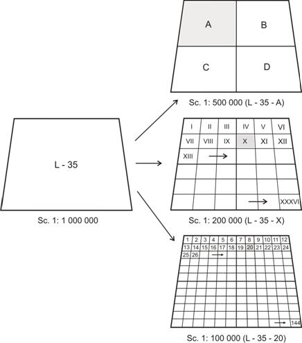 Fig. 7.3. Nomenclatura foilor de harta la sc. 1: 1 000 000,