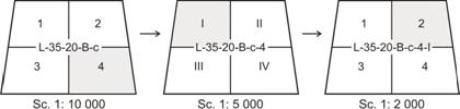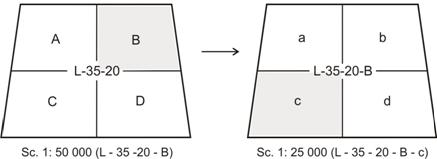 Fig. 7.5. Nomenclatura foilor de harta la scara: 1: 10 000 (L-35-20-B-c-4),
