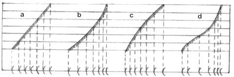 a - uniforma; b - concava; c - convexa; d - neuniforma