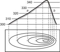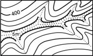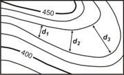 Fig. 7.12. Traseul curbelor de nivel pe dealuri