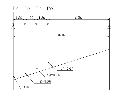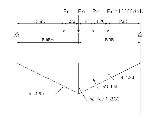 Se cere sa se calculeze Mmax in sectiunea centrala a podului dalat pentru sosea avand desch 353r1716d iderea de calcul lc = 10.10m. Calculul momentului incovoietor se face prin valorificarea liniei de influenta a efortului sectional.