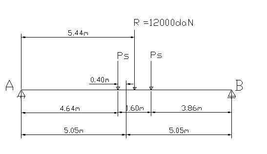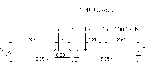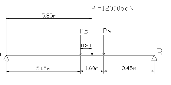 Se cere sa se calculeze Tmax in reazemul A a unui pod dalat avand deschiderea de calcul lc = 10.10m la trecerea unui convoi V80 .