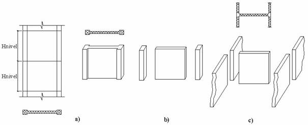 Forma elementelor prefabricate rezulta prin sectionarea peretilor prin taieturi orizontale (fig. 8.1a) sau prin taieturi orizontale si verticale (fig. 8.1b,c).