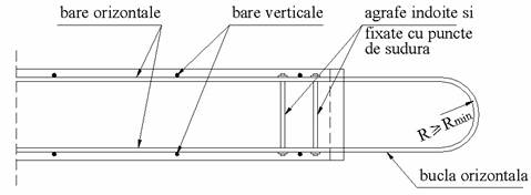 Diametrul minim al etrierilor, care pot fi rectangulari sau cu forme ce urmaresc forma buclelor, 6 mm. Distanta maxima între legaturile transversale ale barelor verticale 10d.