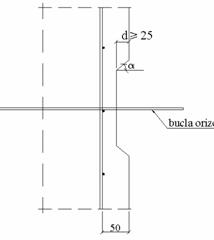 de forfecare a dintilor ( Mustatile orizontale se pot realiza cu bare drepte, în care caz pozitia lor este la jumatatea grosimii peretelui, iar înnadirea lor se face prin sudura, sau sub forma de bucle petrecute ca în fig. 8.4a si b, solutie recomandabila. Numarul legaturilor de armatura pe înaltimea unui etaj va fi minim 5. Armaturile sub forma de mustati se vor lasa din intrândurile dintre dinti (alveole). În cazul mustatilor sub forma de bucle de tip semicircular se vor respecta conditiile privind raza minima de curbura prescrisa în STAS 10107/0-90, conditii care stabilesc si diametrul maxim al buclei. Zonele de îmbinare verticala vor fi alcatuite dupa regulile de alcatuire a intersectiilor de pereti, prevazându-se etrieri suplimentari între bucle. |