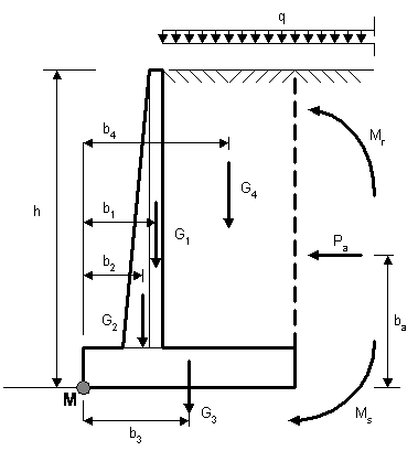 Ms-momentul de stabilitate corespunzator tuturor fortelor care se opun tendintei de rasturnare a zidului prin raport cu punctul M;