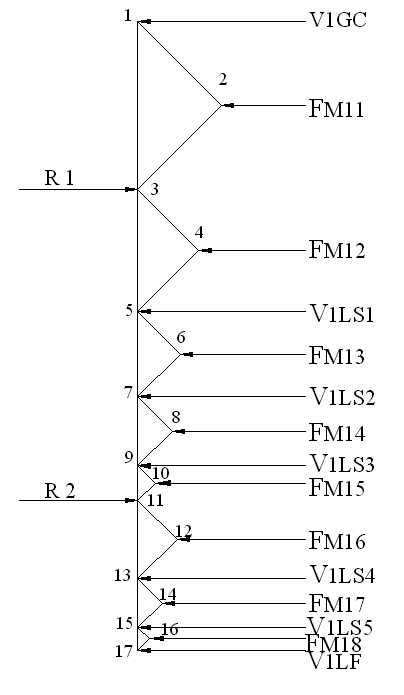 Dimensionarea montantului intermediar se face in mod asemanator.Se vor folosi aceleasi presiuni in noduri si aceleasi presiuni medii pe intervale ca la dimensionarea montantilor de capat.Diferenta va fi data de valorile fortelor ce actioneaza pe montant.