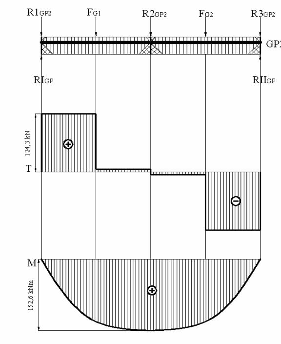 Grinda principala se sprijina pe montantii de capat.Se calculeaza reactiunile la capetele grinzii principale in punctele de sprijin ale acesteia pe montanti din ecuatia de momente si ecuatia de echilibru a fortelor.