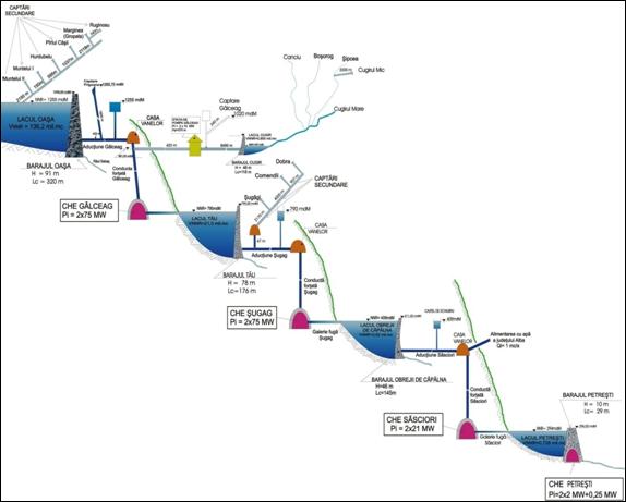 Schema complexa a AHE Sebes pe sectorul Oasa - Petresti