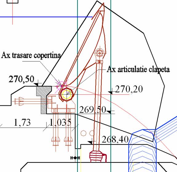 = tavanul camerei servomotoarelor vanelor segment nu este strapuns de nici o componeta a stavilei, astfel ca acesta camera ramane complet uscata;