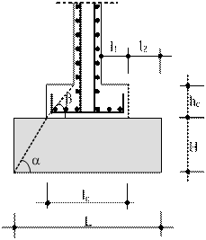Sectiunea transversala a fundatiei sub peretii de beton armat se poate alcatui ca in fig. 6. Conditiile minimale privind sectiunea de beton a fundatiei sunt urmatoarele: