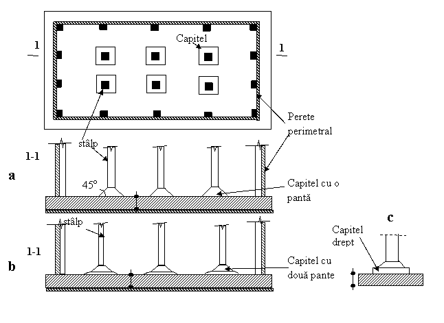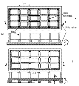 e) radier casetat alcatuit din doua plansee solidarizate între ele prin intermediul unor grinzi dispuse pe doua directii (fig. 11.6).