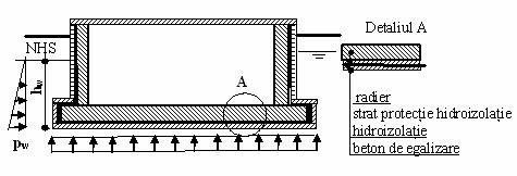 Etansarea cuvei se obtine prin dispunerea hidroizolatiei la exteriorul radierului si a peretilor perimetrali conform figurii 11.7.