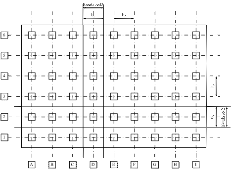 În cazul radierelor încarcate de forte concentrate din stâlpi dispusi echidistant pe ambele directii iar încarcarile din stâlpi nu difera cu mai mult de 20% între ele, se defineste un coeficient de flexibilitate, l, dupa cum urmeaza: