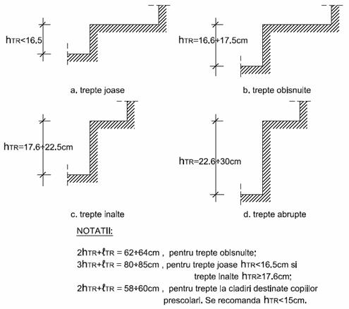 În fig. 5.2. sunt reprezentate toate cele patru tipuri de scari clasificate dupa înaltimea treptelor.