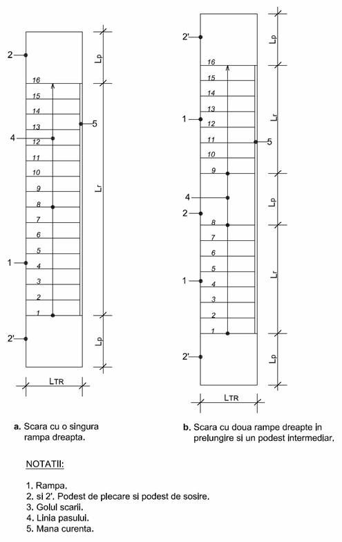 În fig. 5.5.4. sunt reprezentate doua tipuri de scari cu rampe drepte: