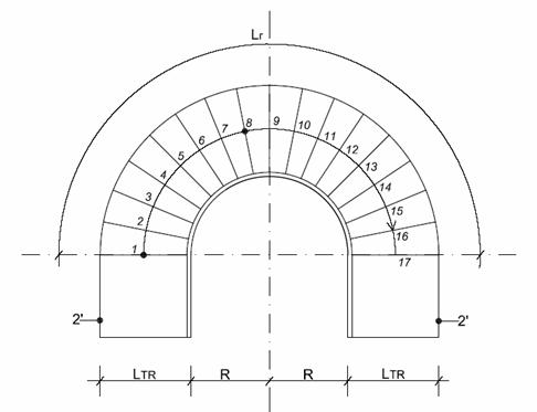 În situatii deosebite se pot folosi curbe construite prin puncte. Aceste scari sunt recomandate în cazuri deosebite, când aspectul estetic este esential. Scarile monumentale pot avea forme curbe. În fig. 5.5.8. este prezentata solutia unei scari care are proiectia în plan un arc de cerc.
