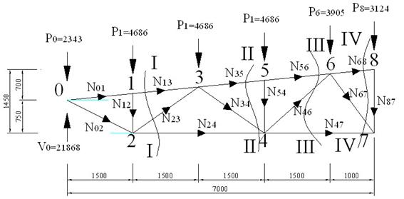 Se alege forma sectiunii barelor ca in figura si se poate observa ca s-a optat pentru elemente apropiate cu distanta intre ele de tg=12 m datorita faptului ca eforturile in bare se situeaza in jurul valorilor 410-600 kN.