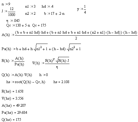 Determinarea nivelului si viteza apei la debitul de calcul Qc