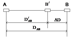 – se masoara cu precizia necesara (rezultata in faza de proiectare topografo-inginereasca a trasarii), utilizand aparatura corespunzatoare, distanta trasata obtinandu-se lungimea D'AB a segmentului AB' fixat pe teren;