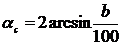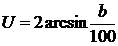 Unghiul la varf, U se calculeaza in functie de c in grade, minute si secunde: