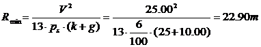 - pentru viteza de proiectare V = 25 km/h raza minima are valoarea Rmin = 25.00 m si raza curenta are valoarea Rc = 70.00 m