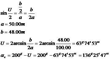Determinarea marimii unghiului U > 100g (90o). Metoda grafo-analitica