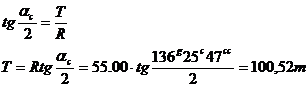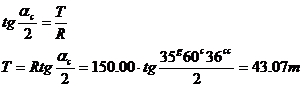 Deci, elementele curbei arc de cerc pentru racordarea propusa sunt conform figurii 1.12.