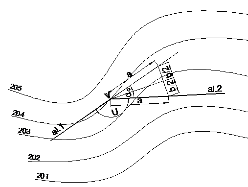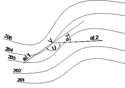 - unghiul la varf intre cele doua aliniamente este U ≤ 100g - grade centesimale (U ≤ 90o - grade sexazecimale).