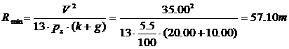 Se alege o raza mai mare decat Rmin R = 55.00 m;