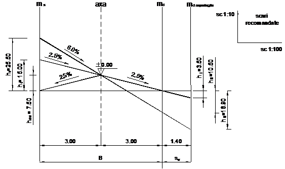 Considerand nemodificate cotele in axa caii rezulta urmatoarele elemente pentru intocmirea schemei de amenajare in spatiu. (figura 1.29):