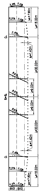Considerand nemodificate cotele in axa caii rezulta urmatoarele elemente pentru intocmirea schemei de amenajare a rampei suprainaltarii (figura 1.24):