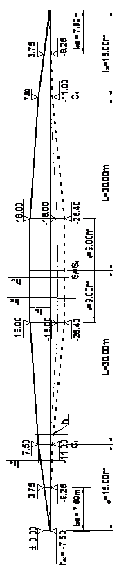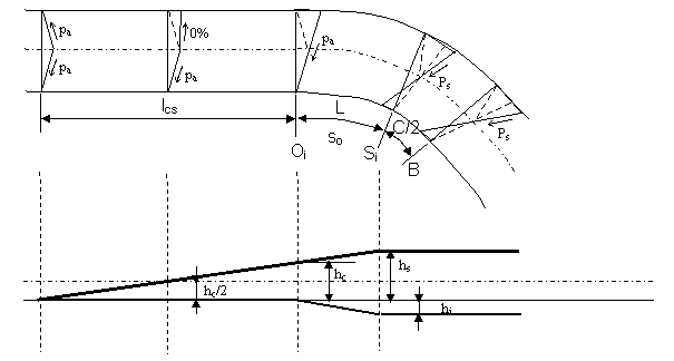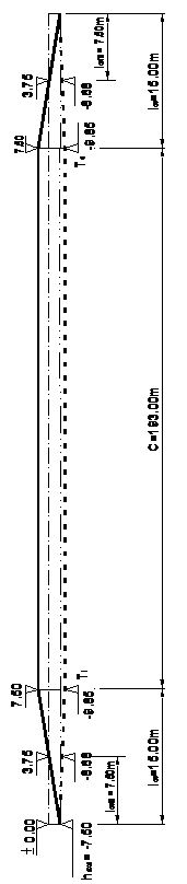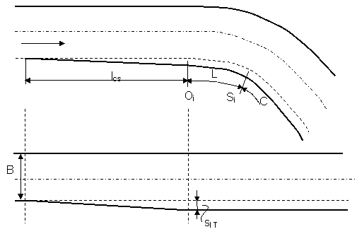 Lungimea pe care se pastreaza profilul suprainaltat este ls = max(V/3.6; 18.00 m)/2 de o parte si de alta a punctului Si = Se. (figura 1.18)