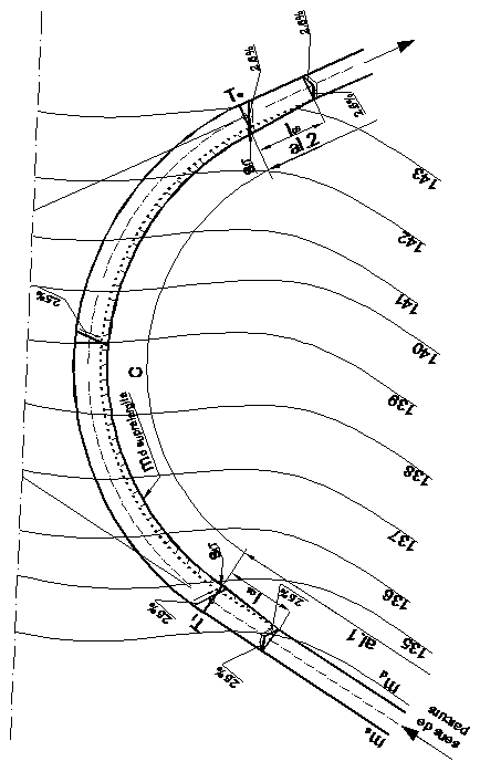 În figura 1.30 este reprezentata amenajarea supralargirii, iar in figura 1.31 este reprezentata amenajarea convertirii pentru curba data.