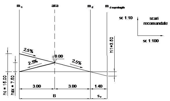 Rezulta ca lungimea pe care se pastreaza profilul suprainaltat este ls = 9.00 m.