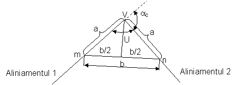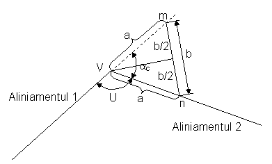 Se duc doua segmente a = 50.00 m (pe planul de situatie la scara 1:1000, a = 50.00 mm), pe cele doua aliniamente care formeaza unghiul U (figura 1.6);