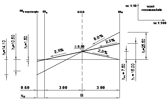 - latimea partii carosabile nesupralargita este B = 6.00 m;