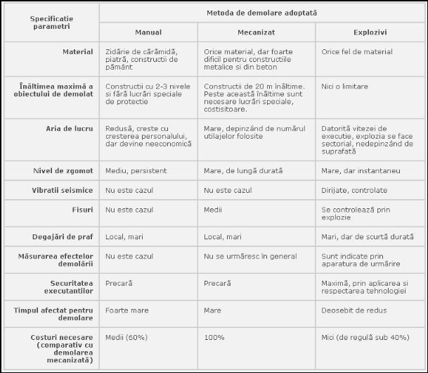 Alternativele posibile pentru dezafectarea cladirii si metodele de demolare sunt prezentate comparativ in urmatorul tabel: