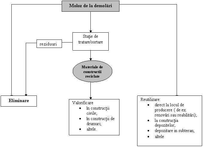 Figura 6. Schema principalelor moduri de valorificare a molozului din demolari