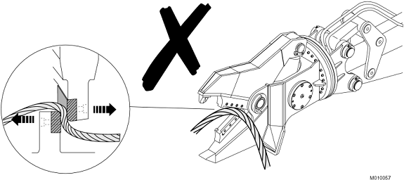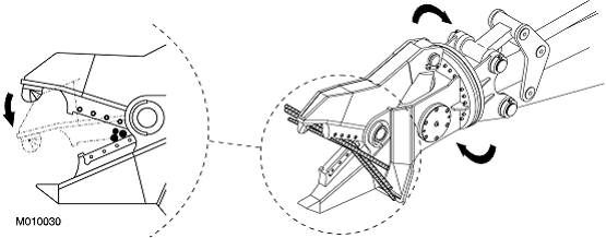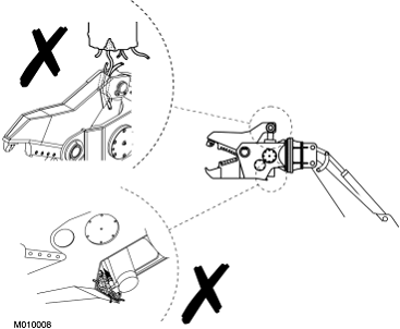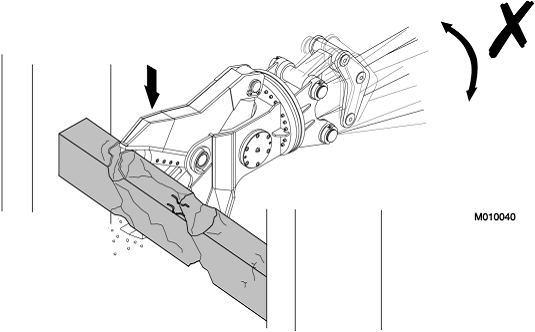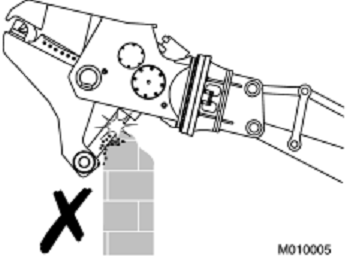 - In timpul utilizarii operatorul trebuie sa aiba grija sa nu loveasca foarfeca de bratul excavatorului sau de furtunele hidraulice.