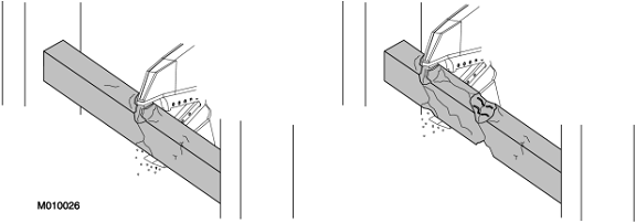 - Cand falcile foarfecii sunt inchise cilindrul este expus. Operatorul trebuie sa aiba grija sa nu il loveasca de beton sau de barele metalice. Lovirea ii poate provoca caune sau scurgeri de ulei.