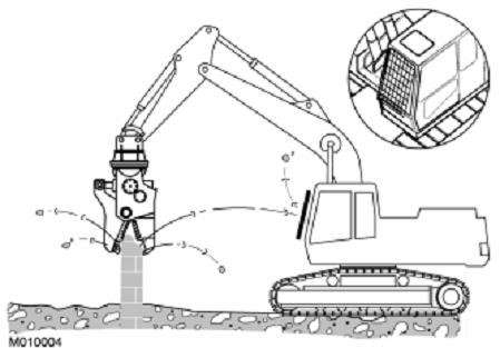 - Pentru protectia operatorului este recomandat sa se foloseasca un grilaj pentru protejarea parbrizului de bucatile din demolare. Este recomandat ca geamurile si sile cabinei sa fie inchise in timpul lucrului.